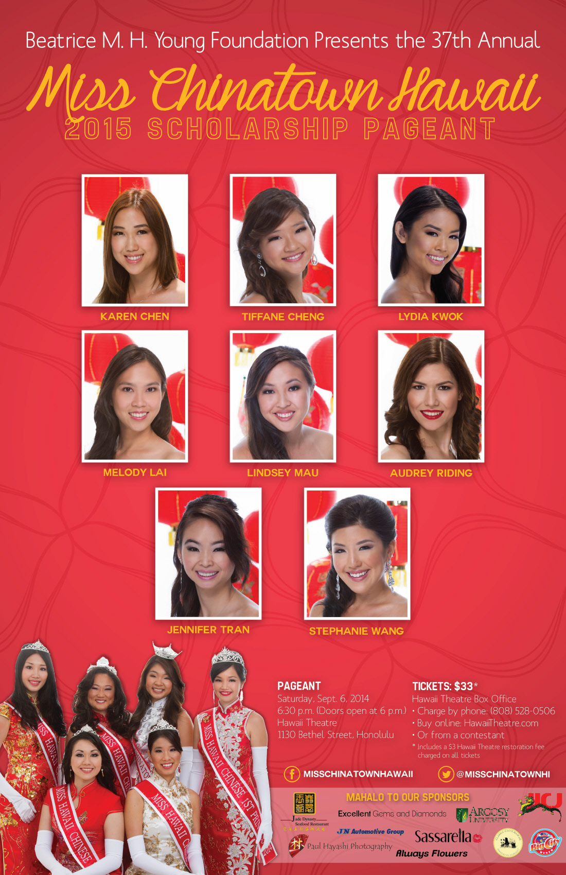This is the livestream page for the Miss Chinatown Hawaii 2015 pageant on Saturday, September 6, 2015 from 6:30pm to 9:00pm.
